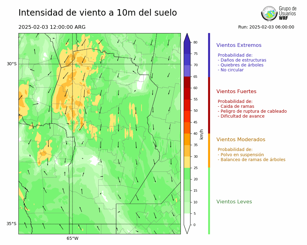 • Intensidad máxima: 28.80 km/h (03/02/2025 13hs.)