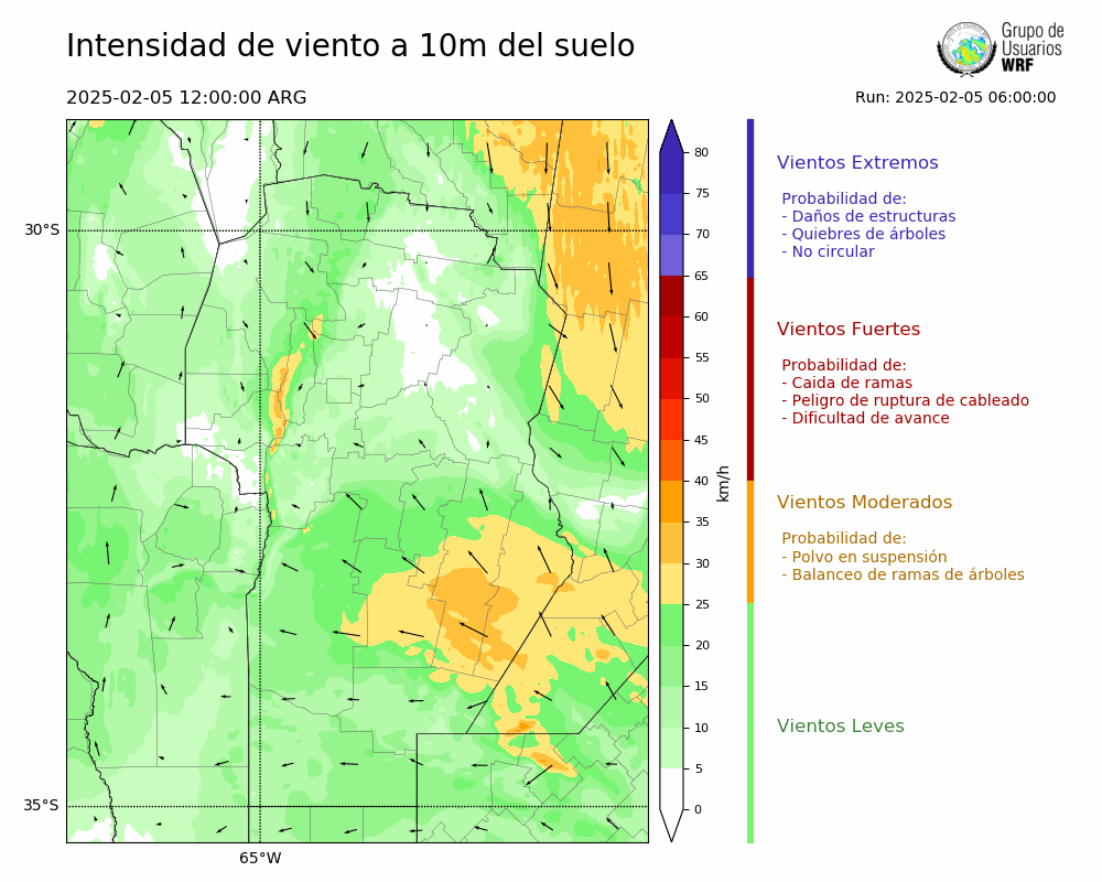 • Intensidad máxima: 25.74 km/h (05/02/2025 19hs.)