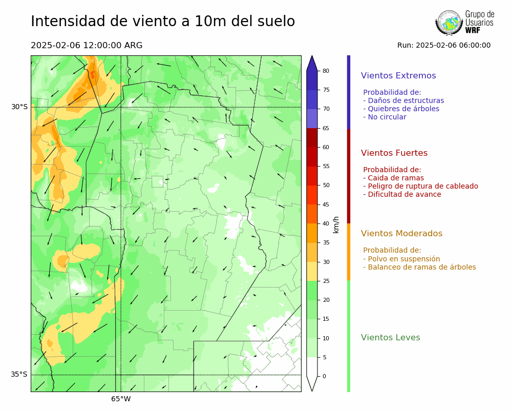 • Intensidad máxima: 16.16 km/h (06/02/2025 19hs.)