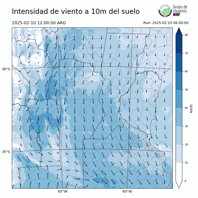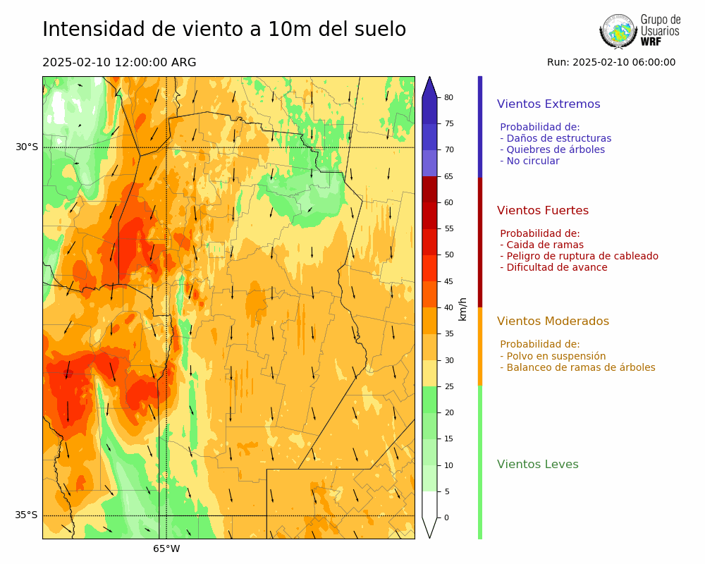 • Intensidad máxima: 36.04 km/h (10/02/2025 12hs.)