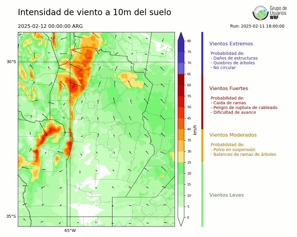 • Intensidad máxima: 13.04 km/h (12/02/2025 02hs.)
