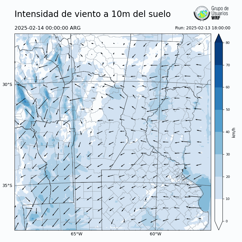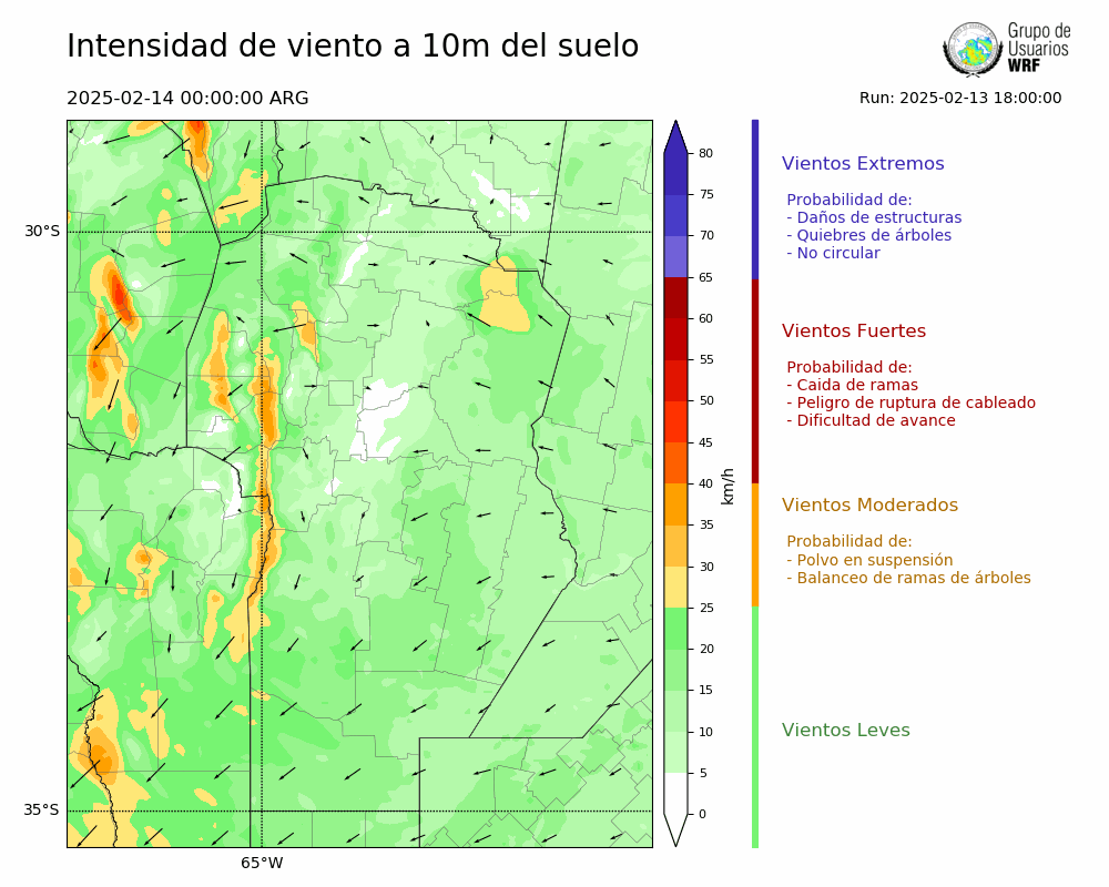 • Intensidad máxima: 9.08 km/h (14/02/2025 11hs.)