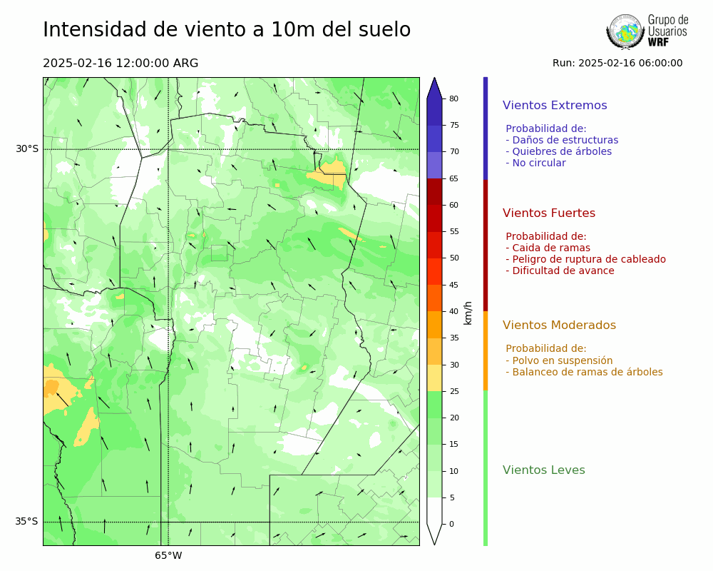 • Intensidad máxima: 6.86 km/h (17/02/2025 12hs.)