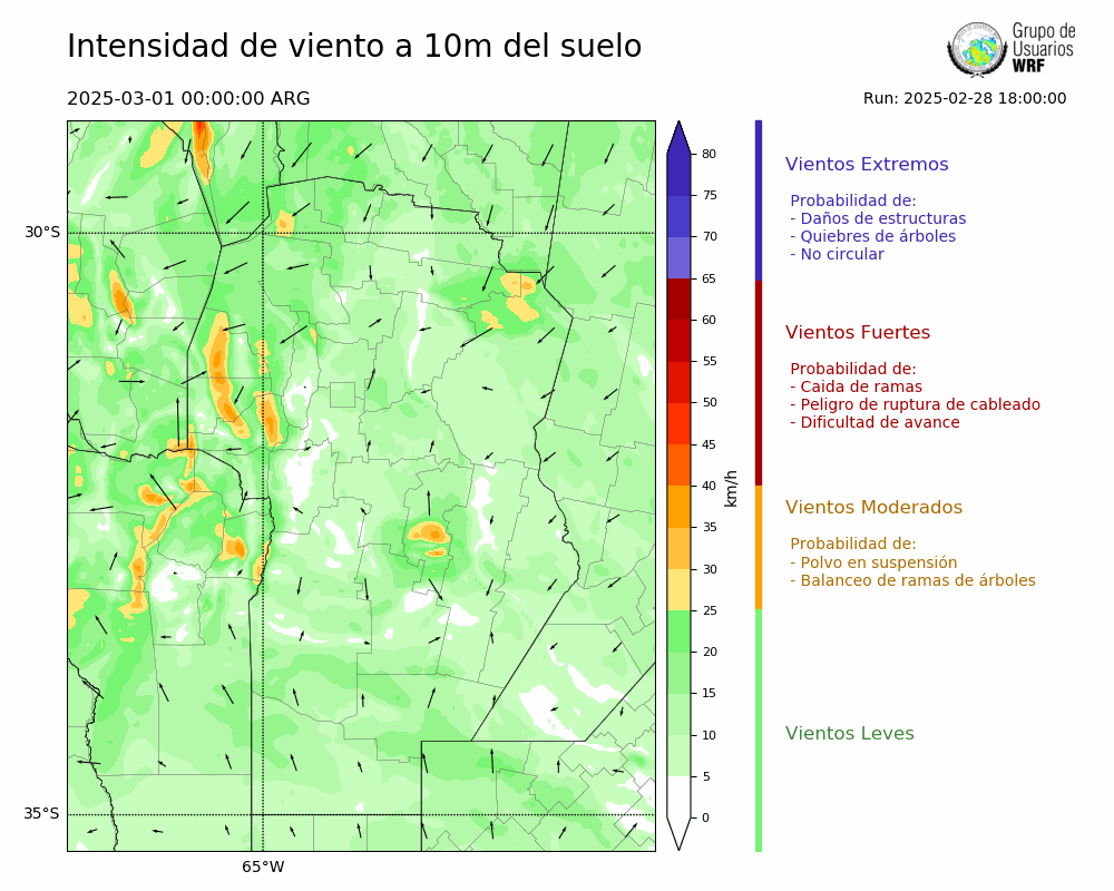 • Intensidad máxima: 4.90 km/h (02/03/2025 06hs.)