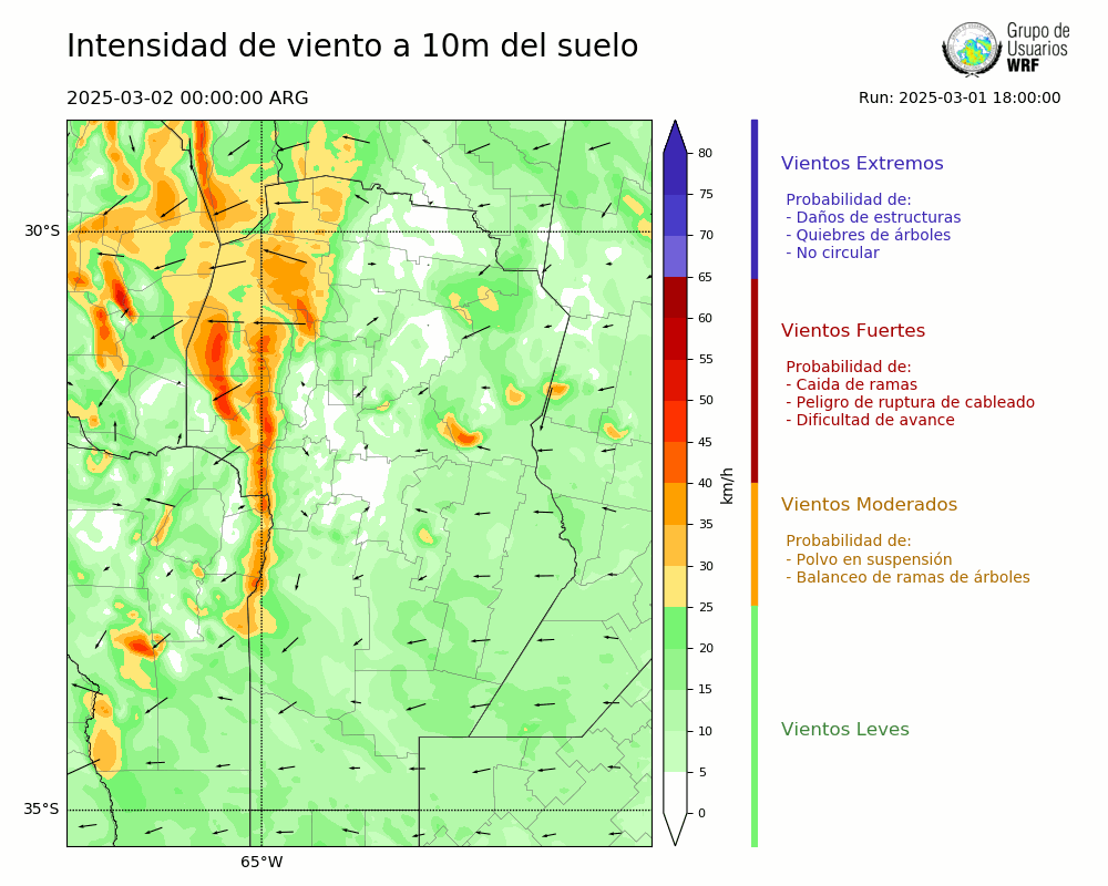 • Intensidad máxima: 22.36 km/h (02/03/2025 05hs.)