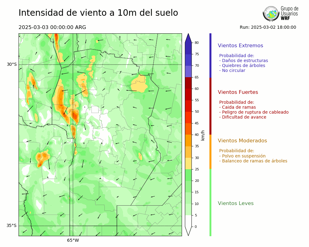 • Intensidad máxima: 33.69 km/h (03/03/2025 11hs.)