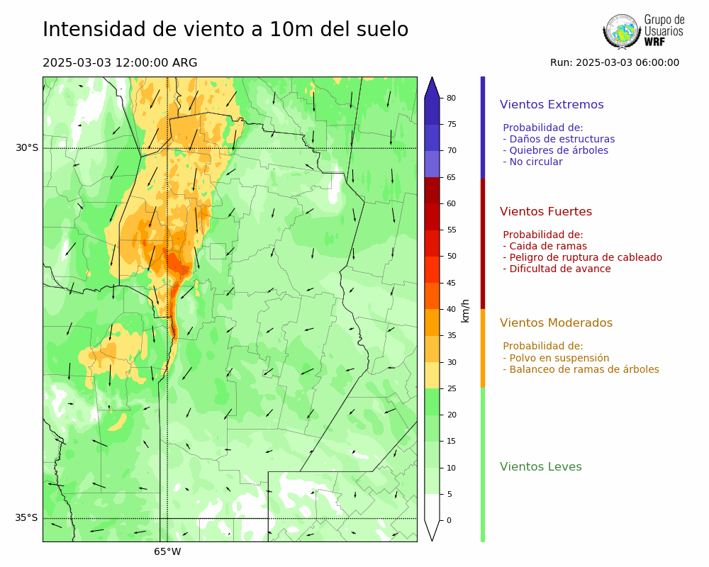 • Intensidad máxima: 25.77 km/h (05/03/2025 02hs.)