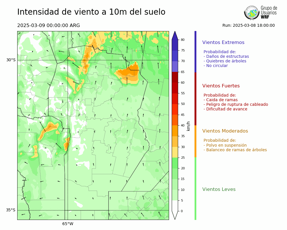 • Intensidad máxima: 10.12 km/h (09/03/2025 22hs.)