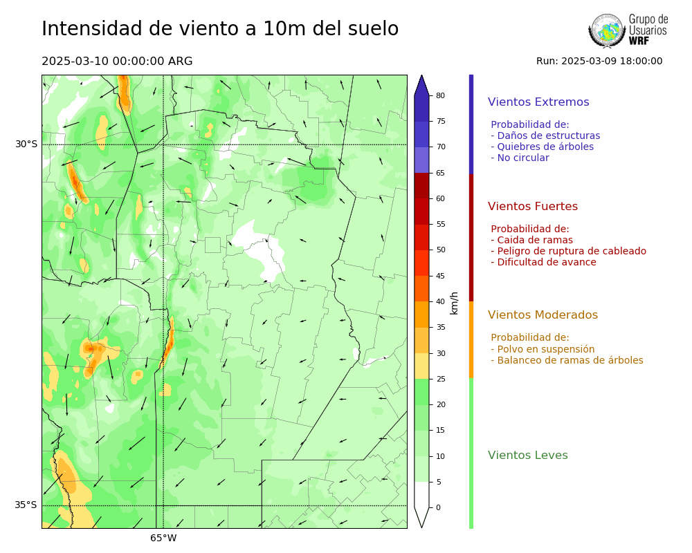 • Intensidad máxima: 18.92 km/h (10/03/2025 11hs.)