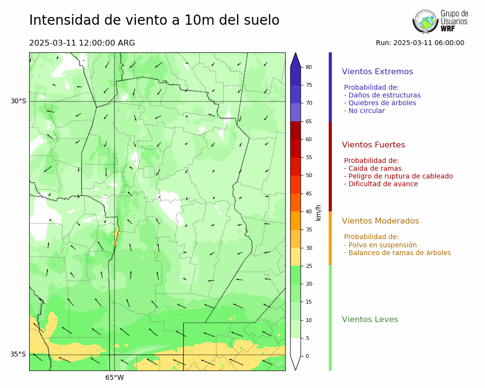 • Intensidad máxima: 19.67 km/h (11/03/2025 16hs.)