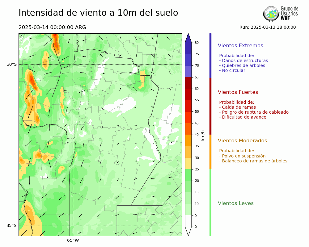 • Intensidad máxima: 12.60 km/h (16/03/2025 04hs.)