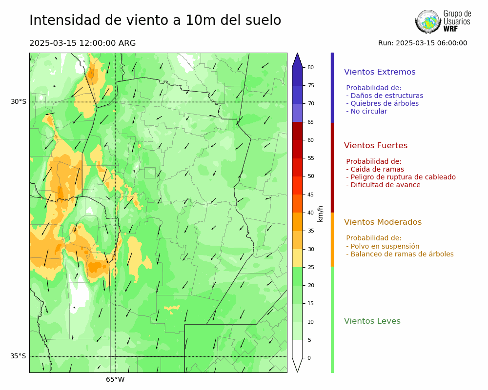 • Intensidad máxima: 23.40 km/h (15/03/2025 12hs.)