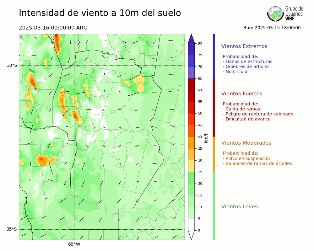 • Intensidad máxima: 15.45 km/h (16/03/2025 00hs.)
