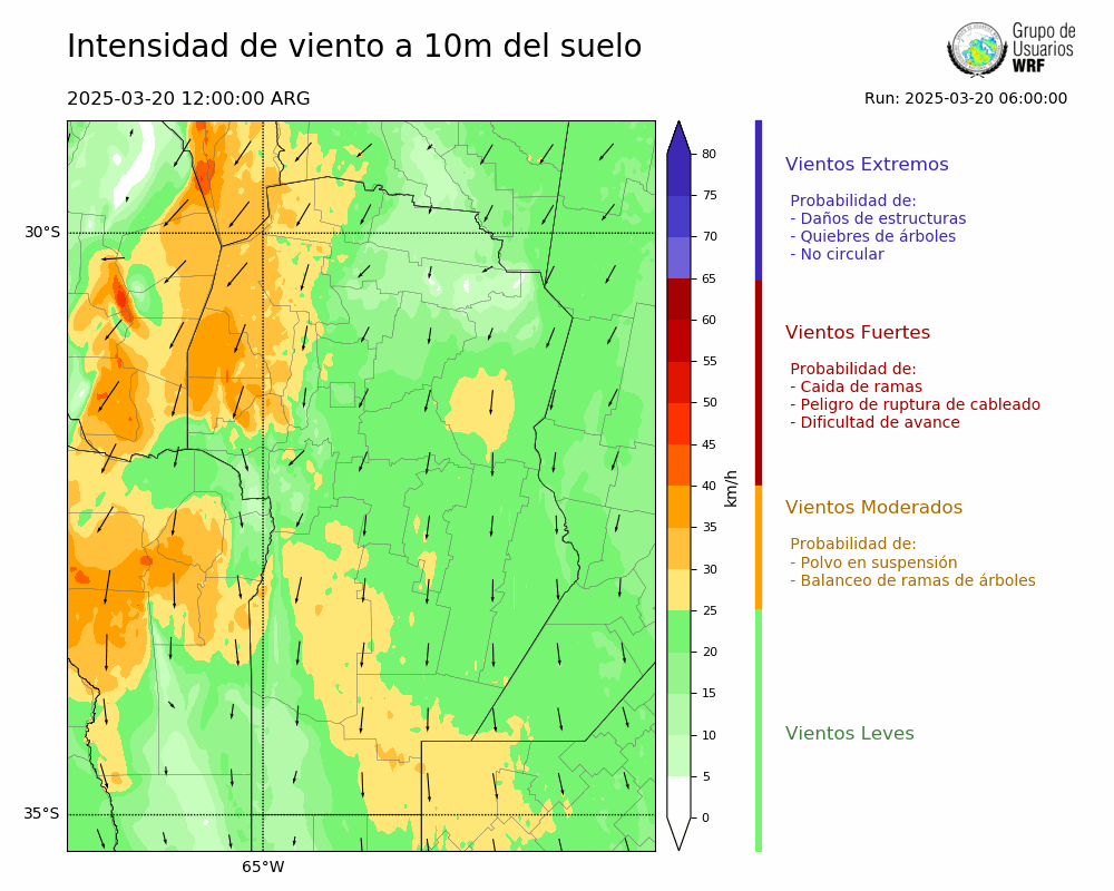 • Intensidad máxima: 9.35 km/h (22/03/2025 04hs.)