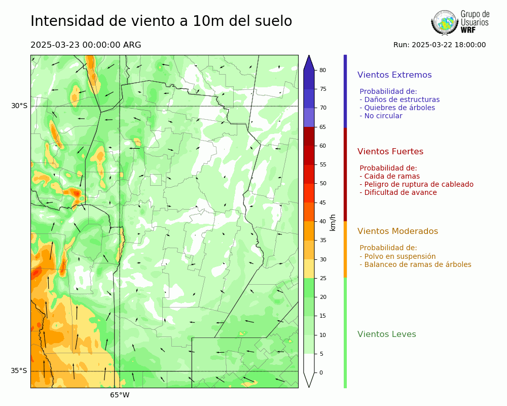 • Intensidad máxima: 10.31 km/h (23/03/2025 07hs.)