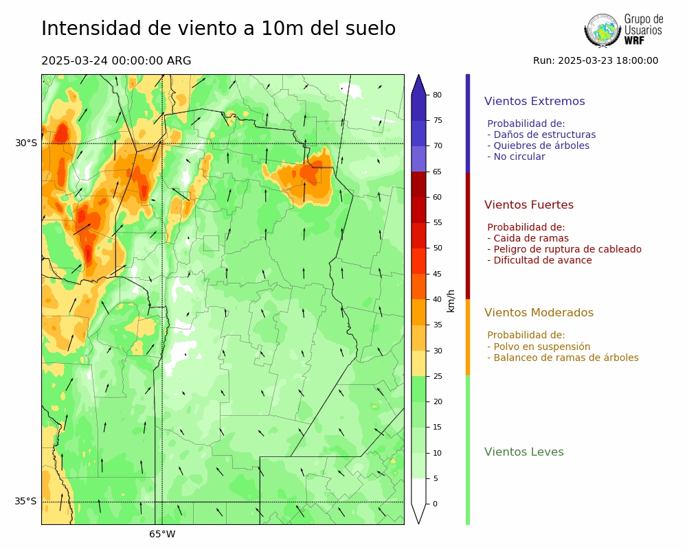 • Intensidad máxima: 8.64 km/h (24/03/2025 05hs.)