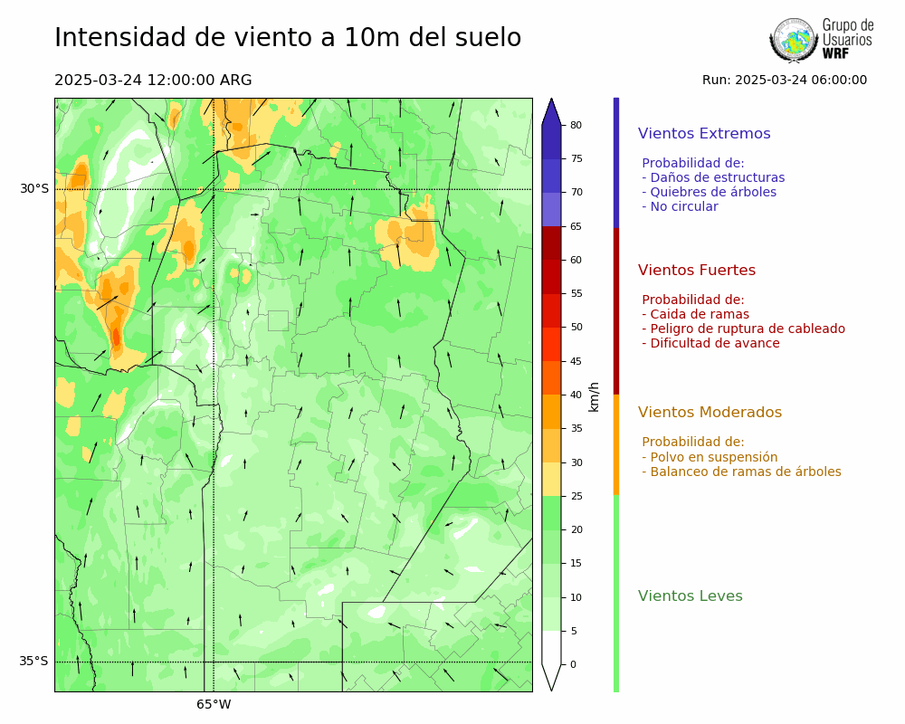 • Intensidad máxima: 15.33 km/h (24/03/2025 17hs.)