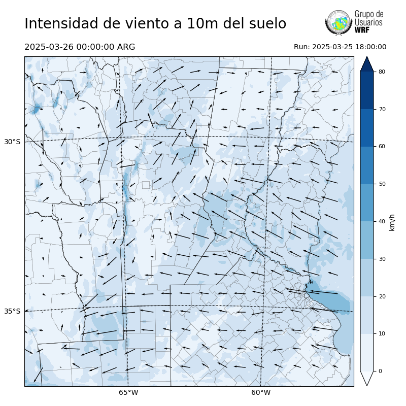 • Intensidad máxima: 8.69 km/h (26/03/2025 02hs.)