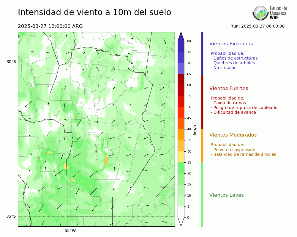 • Intensidad máxima: 12.69 km/h (27/03/2025 16hs.)