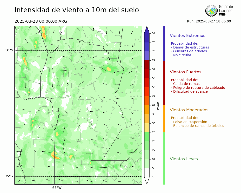 • Intensidad máxima: 11.20 km/h (28/03/2025 10hs.)