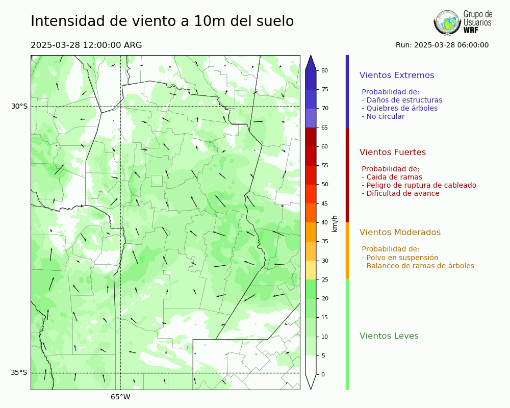 • Intensidad máxima: 17.33 km/h (28/03/2025 14hs.)