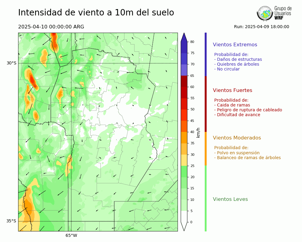 • Intensidad máxima: 10.21 km/h (10/04/2025 11hs.)