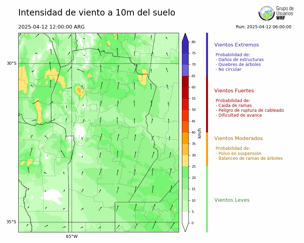 • Intensidad máxima: 14.48 km/h (12/04/2025 15hs.)