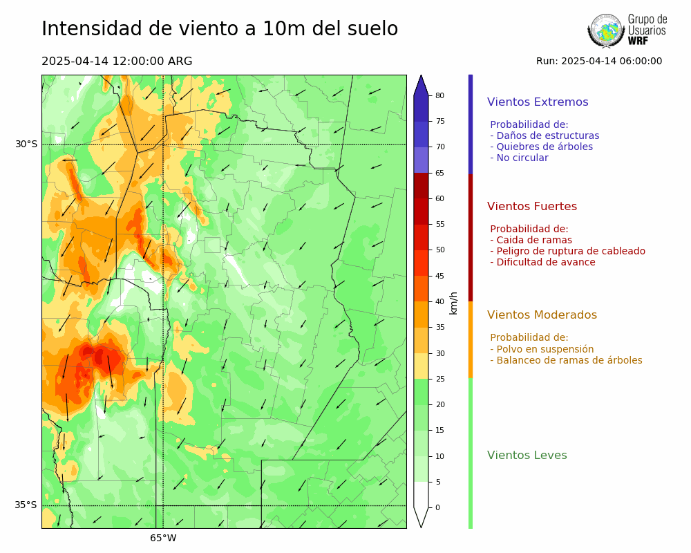 • Intensidad máxima: 26.16 km/h (14/04/2025 12hs.)
