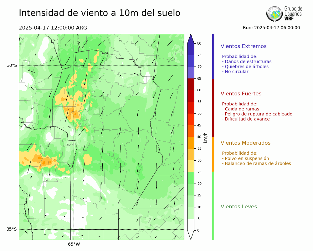 • Intensidad máxima: 14.56 km/h (18/04/2025 04hs.)