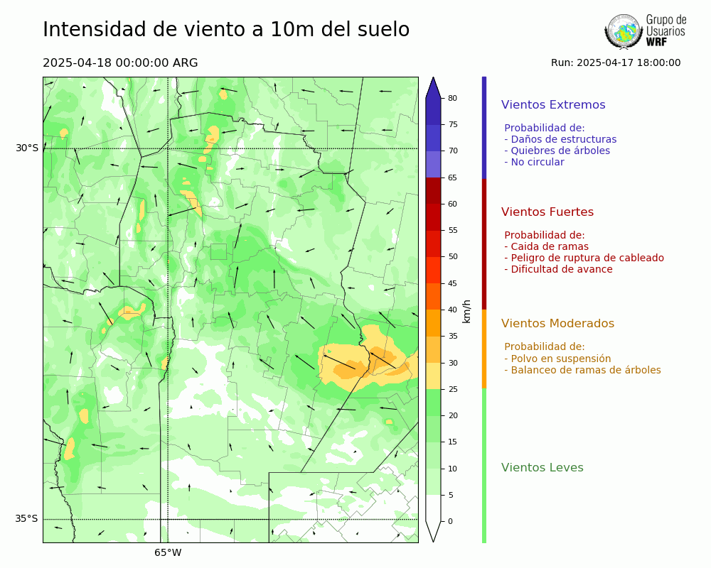 • Intensidad máxima: 17.15 km/h (18/04/2025 11hs.)