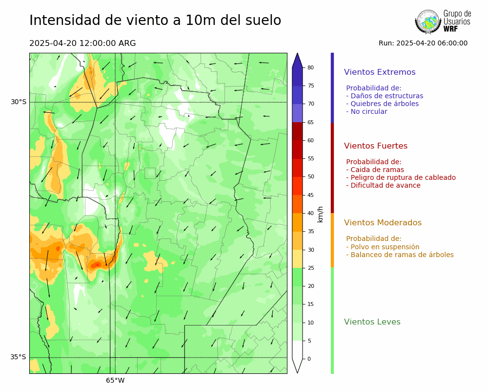 • Intensidad máxima: 19.11 km/h (20/04/2025 16hs.)