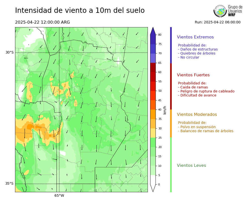 • Intensidad máxima: 21.23 km/h (22/04/2025 16hs.)