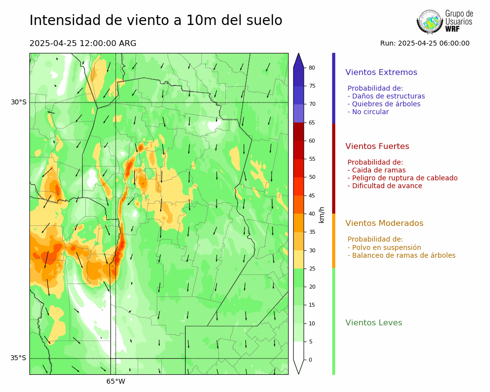 • Intensidad máxima: 16.70 km/h (25/04/2025 18hs.)