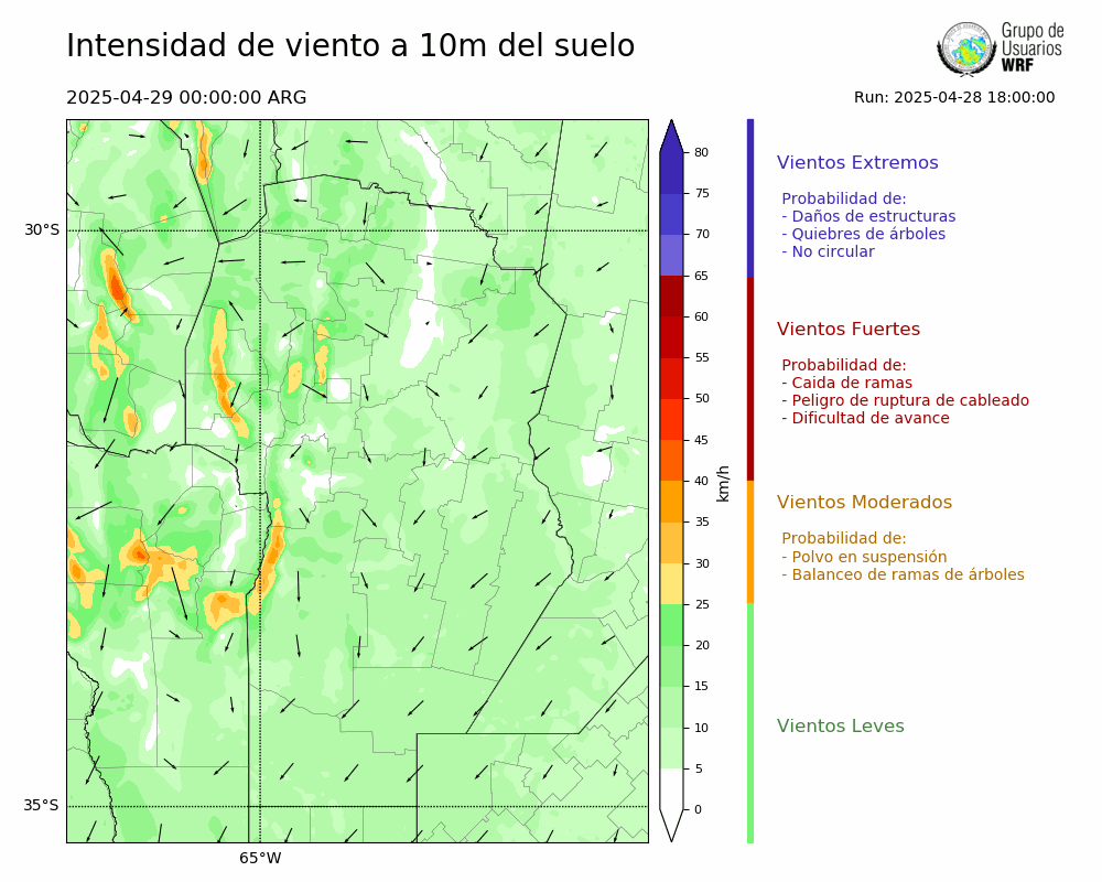 • Intensidad máxima: 31.35 km/h (29/04/2025 03hs.)