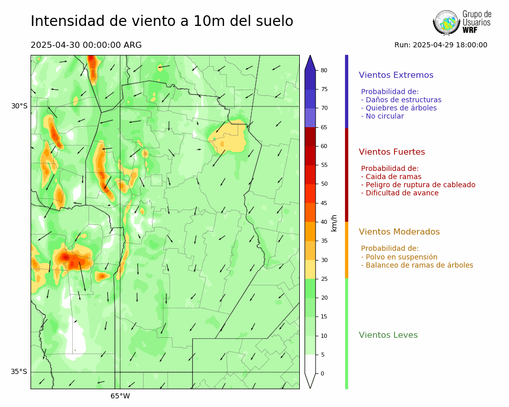 • Intensidad máxima: 17.30 km/h (30/04/2025 11hs.)