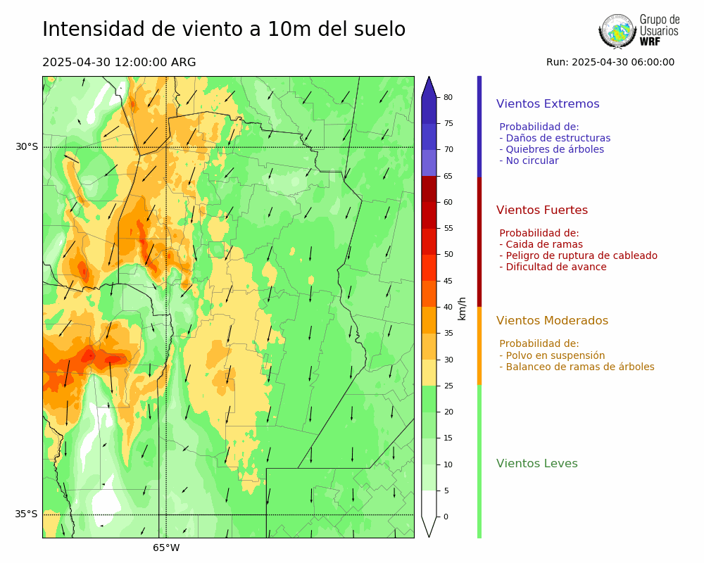 • Intensidad máxima: 29.46 km/h (30/04/2025 16hs.)