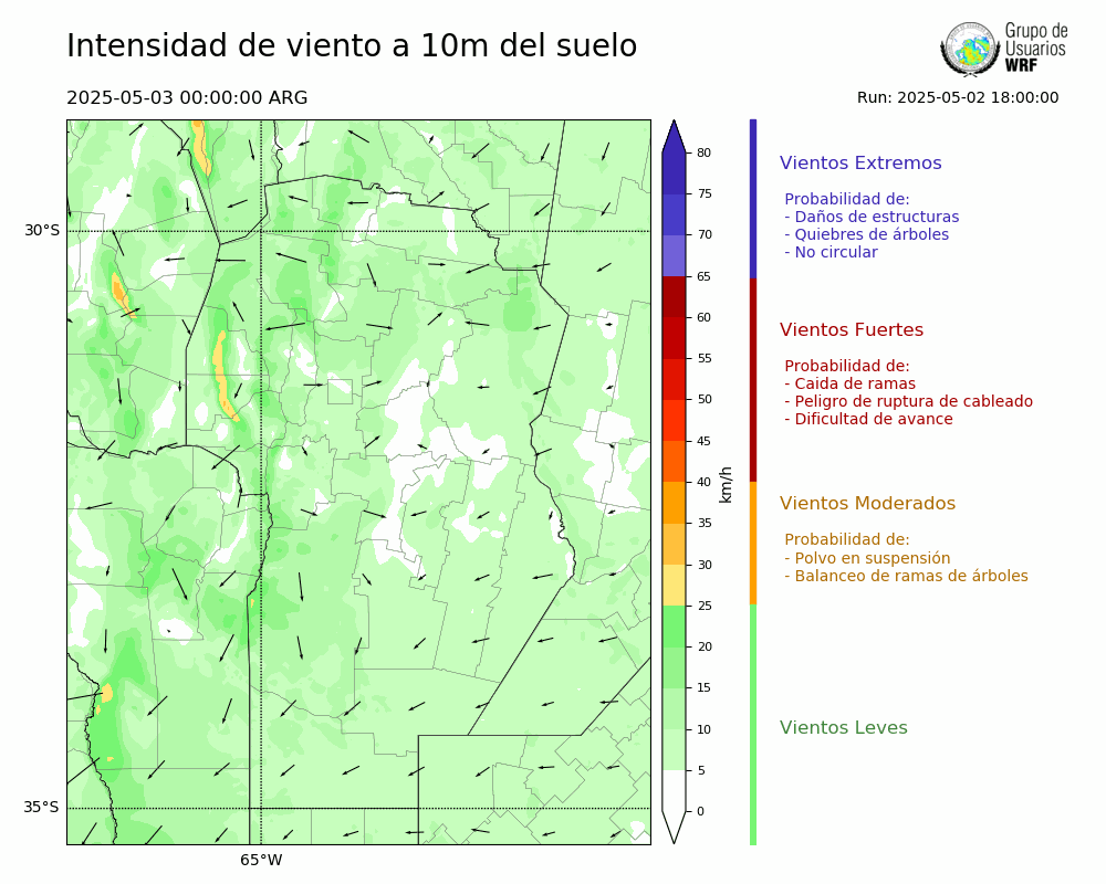 • Intensidad máxima: 1.29 km/h (03/05/2025 04hs.)