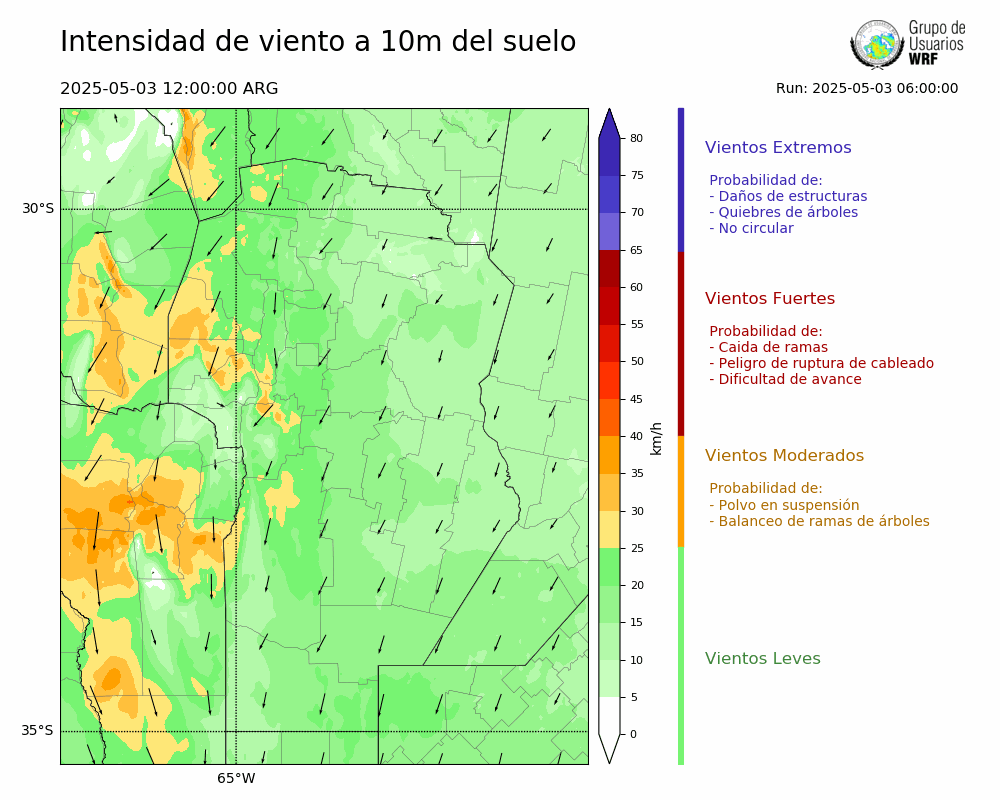 • Intensidad máxima: 27.55 km/h (03/05/2025 15hs.)