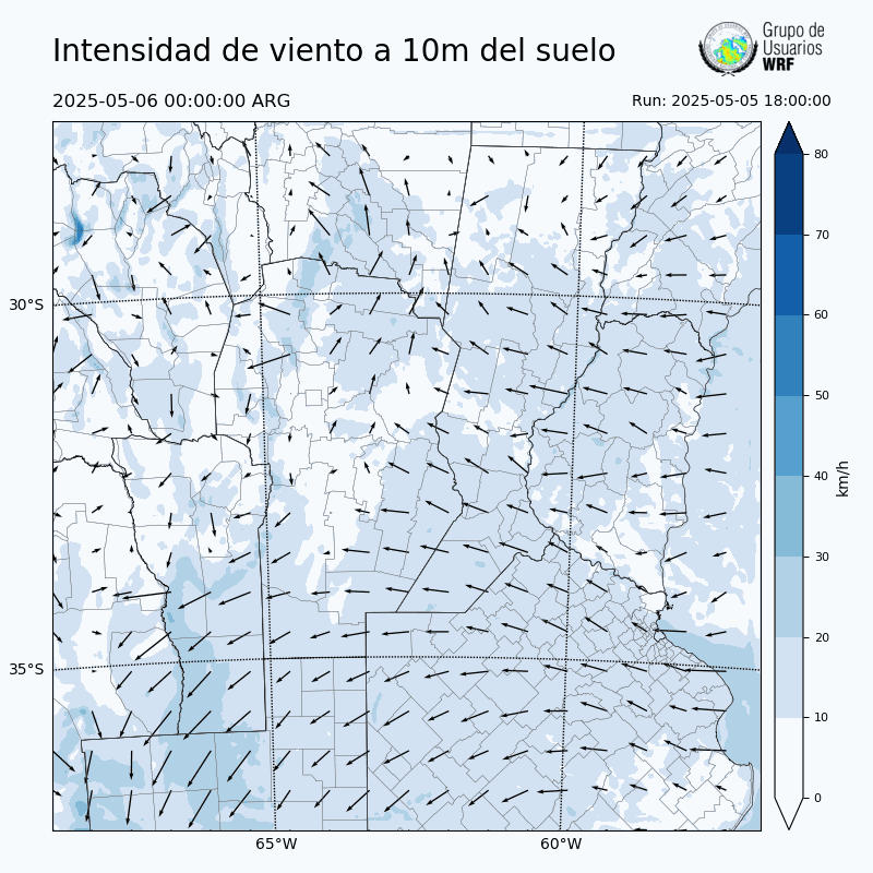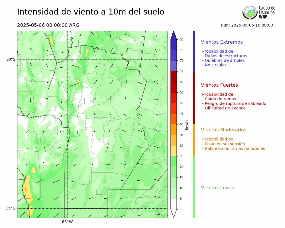 • Intensidad máxima: 8.05 km/h (06/05/2025 10hs.)