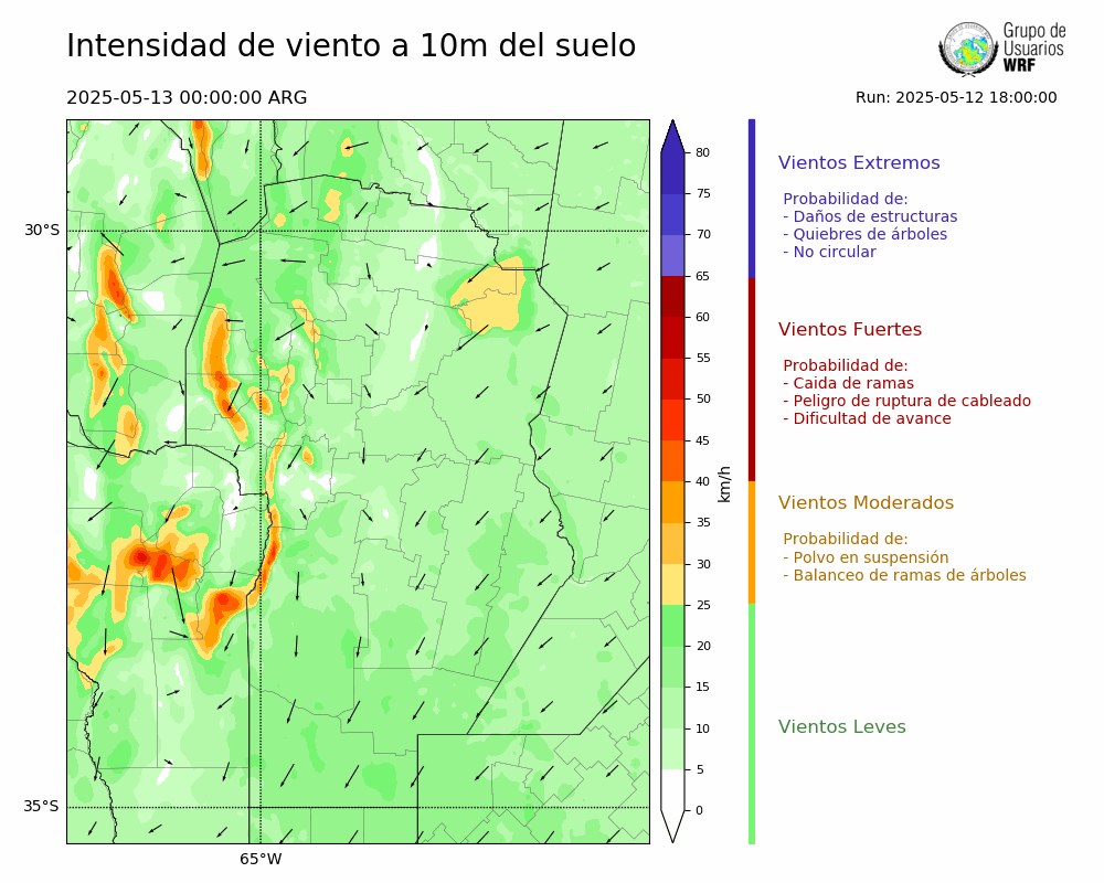 • Intensidad máxima: 13.32 km/h (13/05/2025 11hs.)