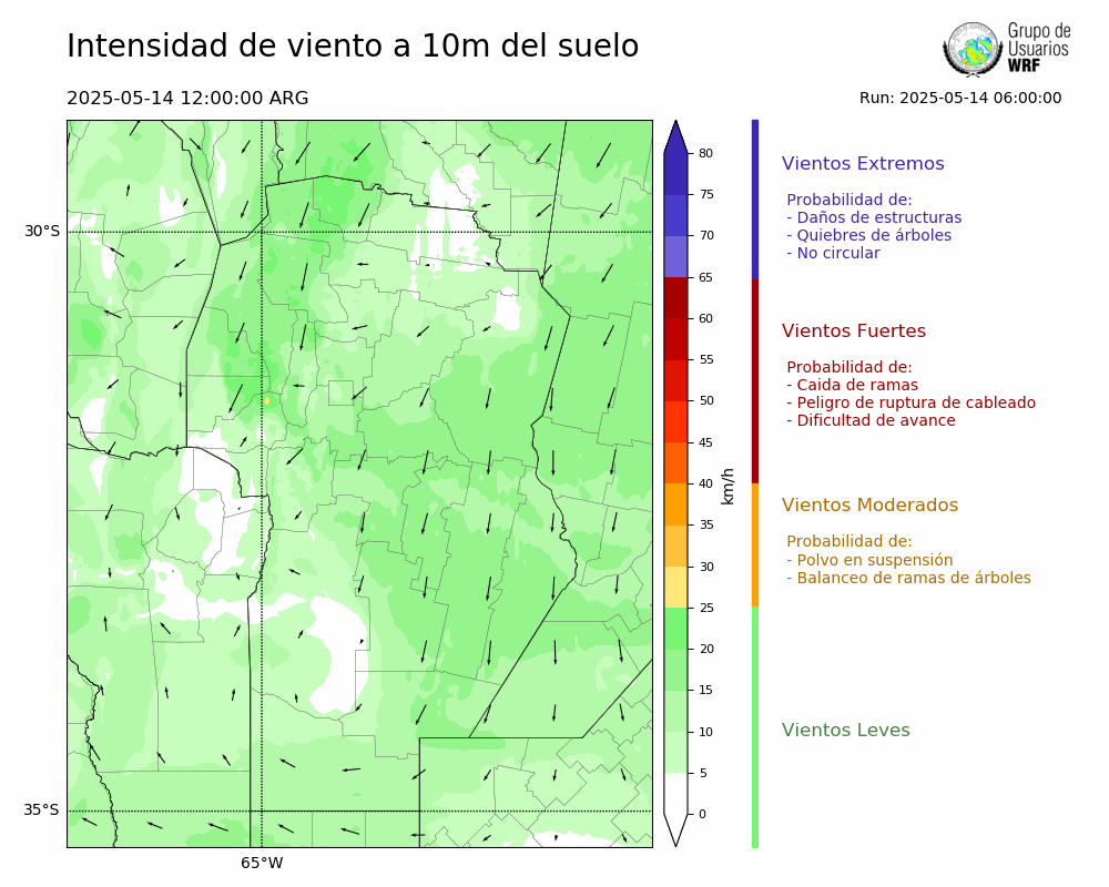 • Intensidad máxima: 14.01 km/h (14/05/2025 18hs.)