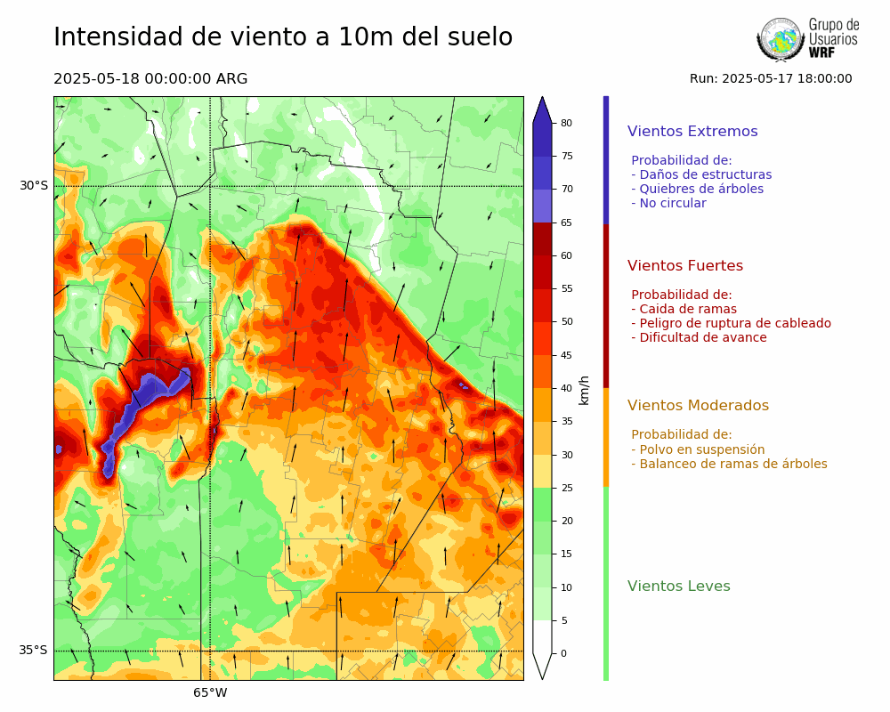 • Intensidad máxima: 32.83 km/h (18/05/2025 00hs.)