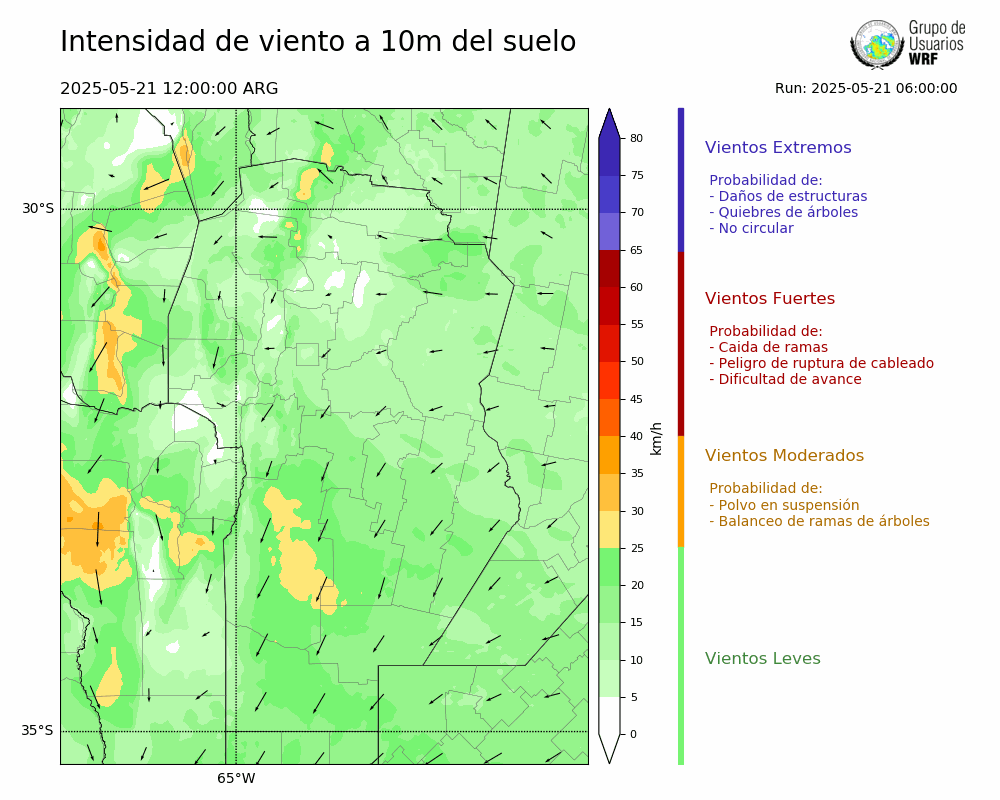 • Intensidad máxima: 11.60 km/h (22/05/2025 04hs.)