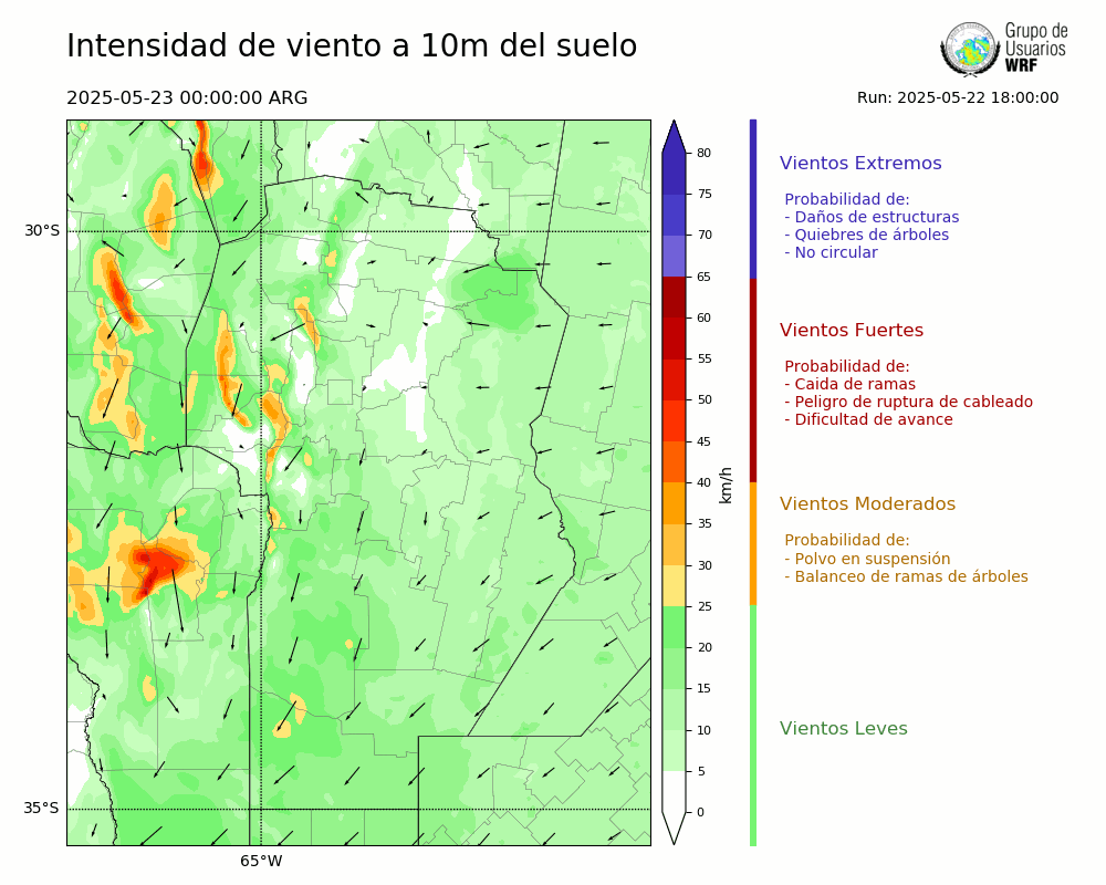 • Intensidad máxima: 12.93 km/h (23/05/2025 11hs.)