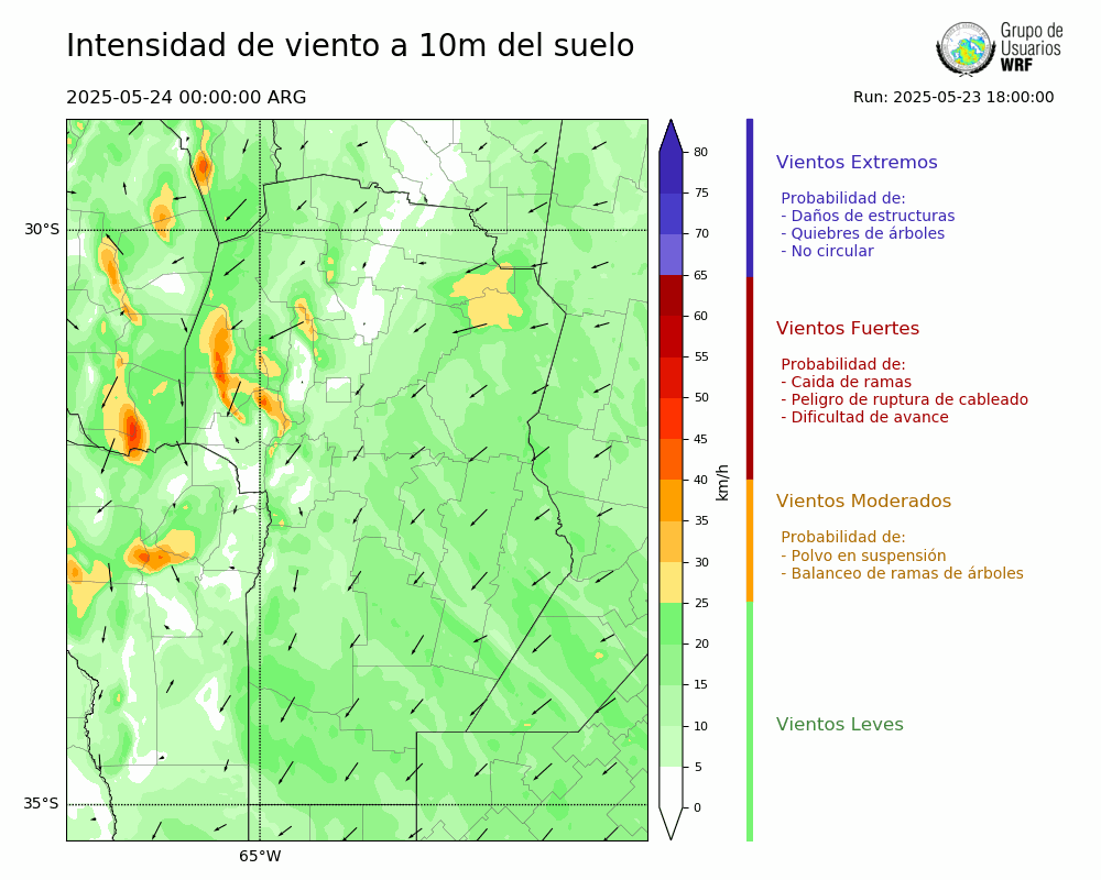 • Intensidad máxima: 8.04 km/h (24/05/2025 03hs.)