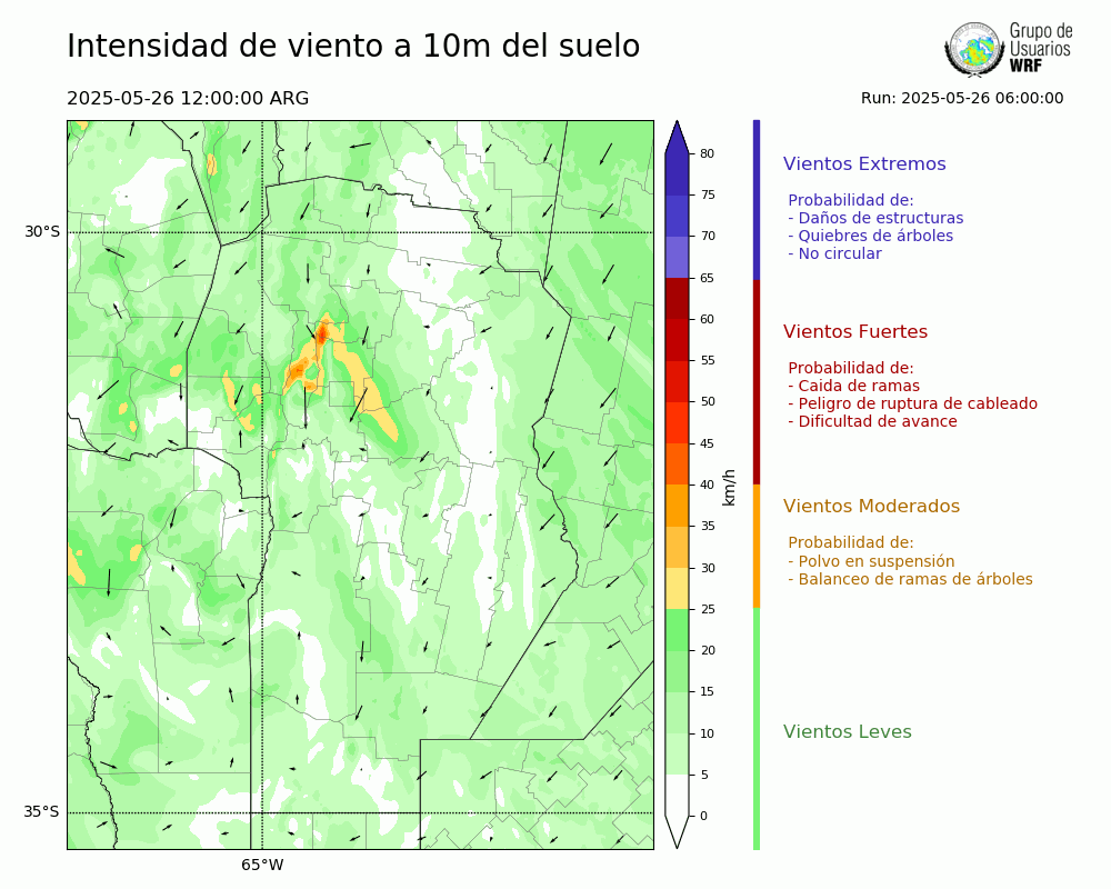 • Intensidad máxima: 13.66 km/h (26/05/2025 16hs.)