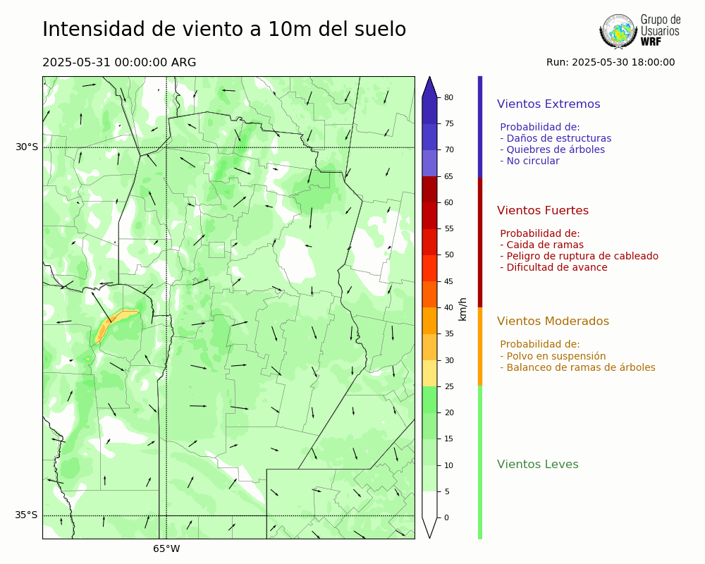 • Intensidad máxima: 12.93 km/h (31/05/2025 11hs.)