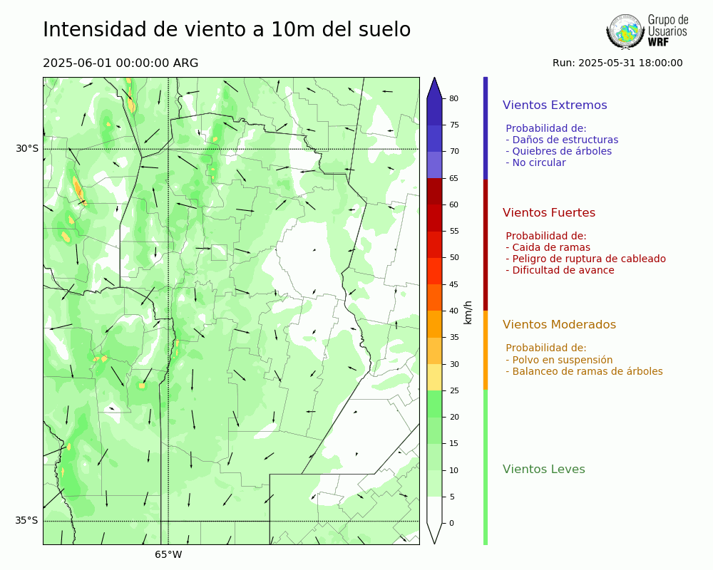 • Intensidad máxima: 14.82 km/h (01/06/2025 11hs.)