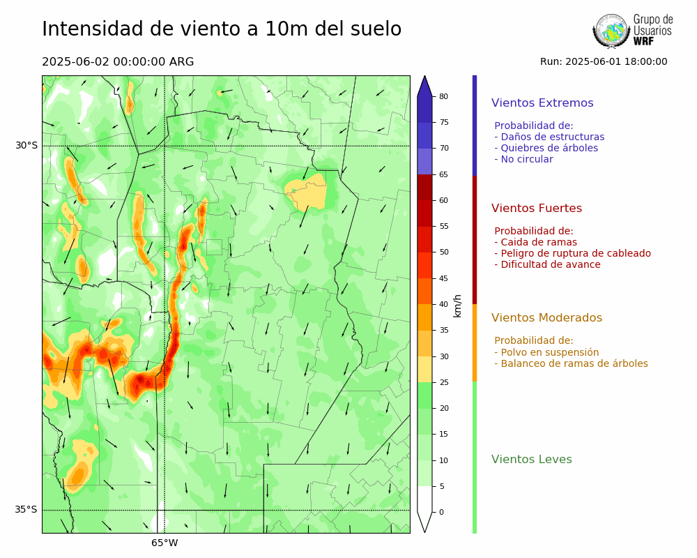 • Intensidad máxima: 12.38 km/h (02/06/2025 00hs.)
