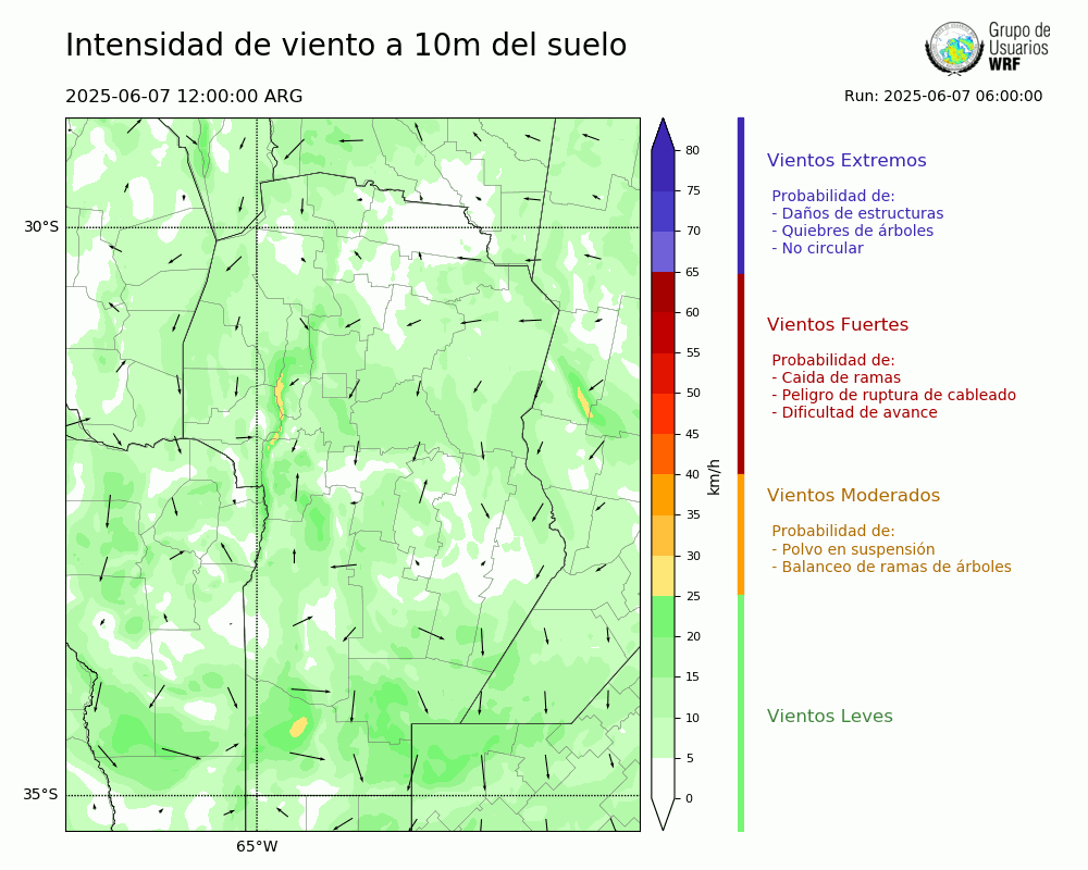 • Intensidad máxima: 15.68 km/h (07/06/2025 16hs.)